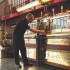 マッシュタンの下にあるのは銅製アンダーバックで、ブキャナンいわく従業員が毎日磨いているためピカピカだ。糖化が済んだ麦汁を排出し、ウォッシュバックに移送するまで貯蔵するための古い設備である。