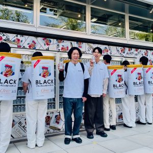 お笑いコンビ「ニューヨーク」もおすすめのハイボール缶。原宿界隈を回遊する「ブラックニッカ隊」を見かけたら、合言葉「ブラックニッカ」で声をかけてみよう。